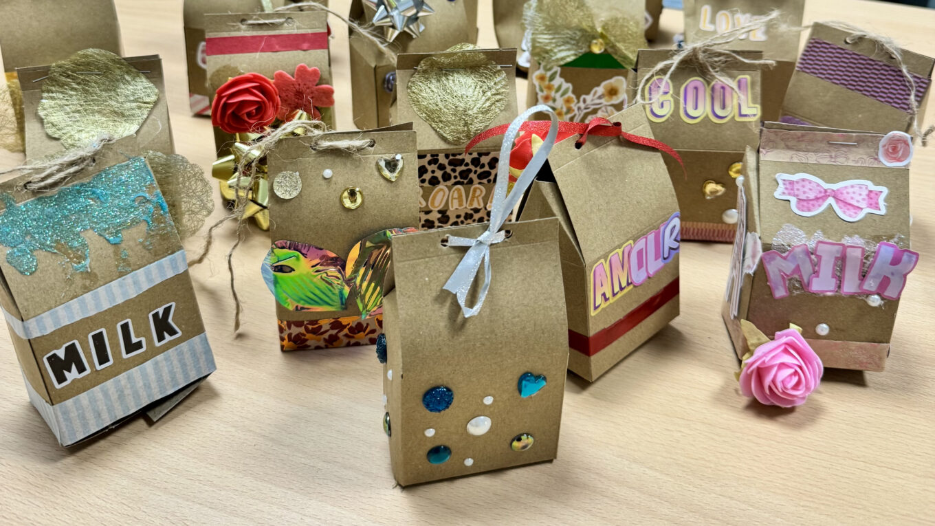 L’atelier création a fabriqué pour vous de jolies boîtes qui seront mises en vente jeudi, pendant la récréation de 10h.