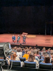 Les élèves ont profité d’un « bord de scène » après la représentation pour poser des questions et discuter avec le metteur en scène et certains comédiens.