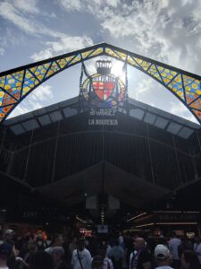 En fin d’après midi nous nous sommes tous rĂ©unis pour aller se balader sur la grande Rambla de Barcelone et les Ă©lèves ont pu dĂ©couvrir le marchĂ© de la BoquerĂa.